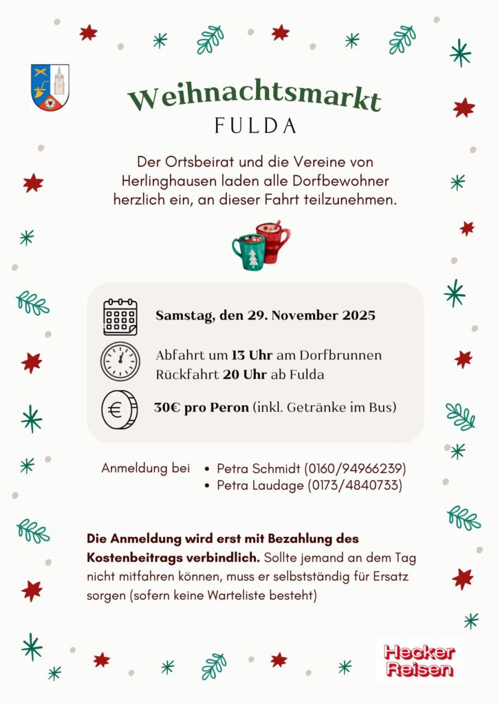 • Angebot: Fahrt zum Weihnachtsmarkt nach Fulda am 29.11.2025